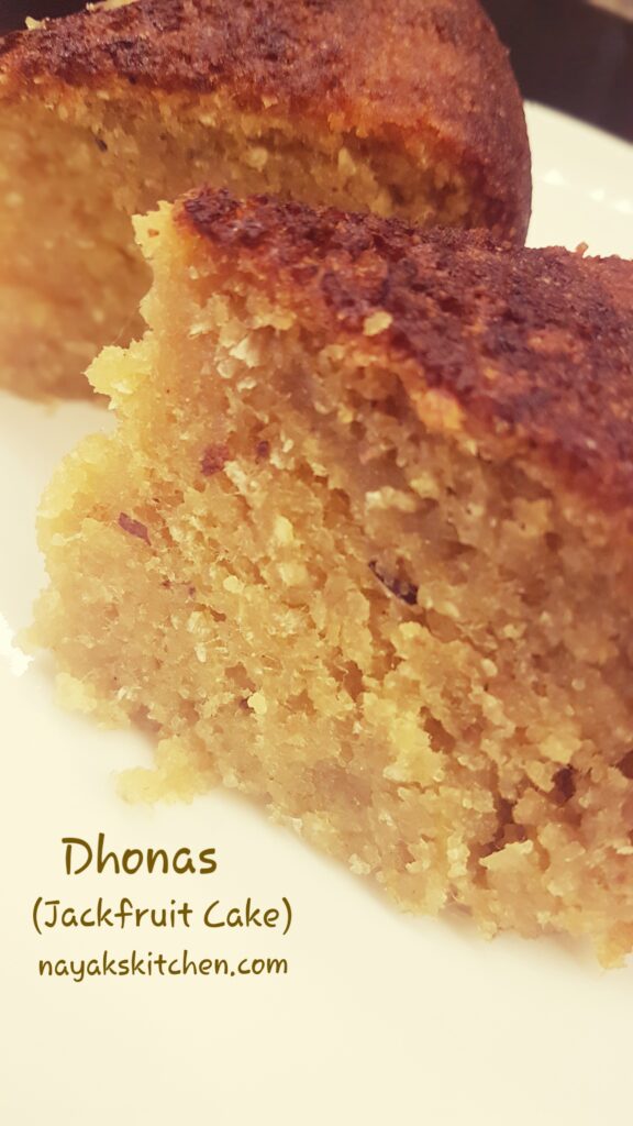 his recipe for jackfruit cake does not use eggs. Hence, dhonas is eggless and a very healthy recipe. A similar version of this is the delectable Goan ‘Tavsalli‘ (cucumber cake).