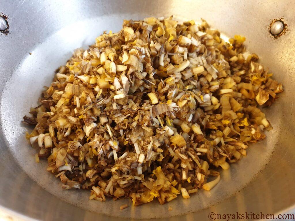 Coconut oil – 2 tbsp (for applying on hands while cleaning the banana blossom)